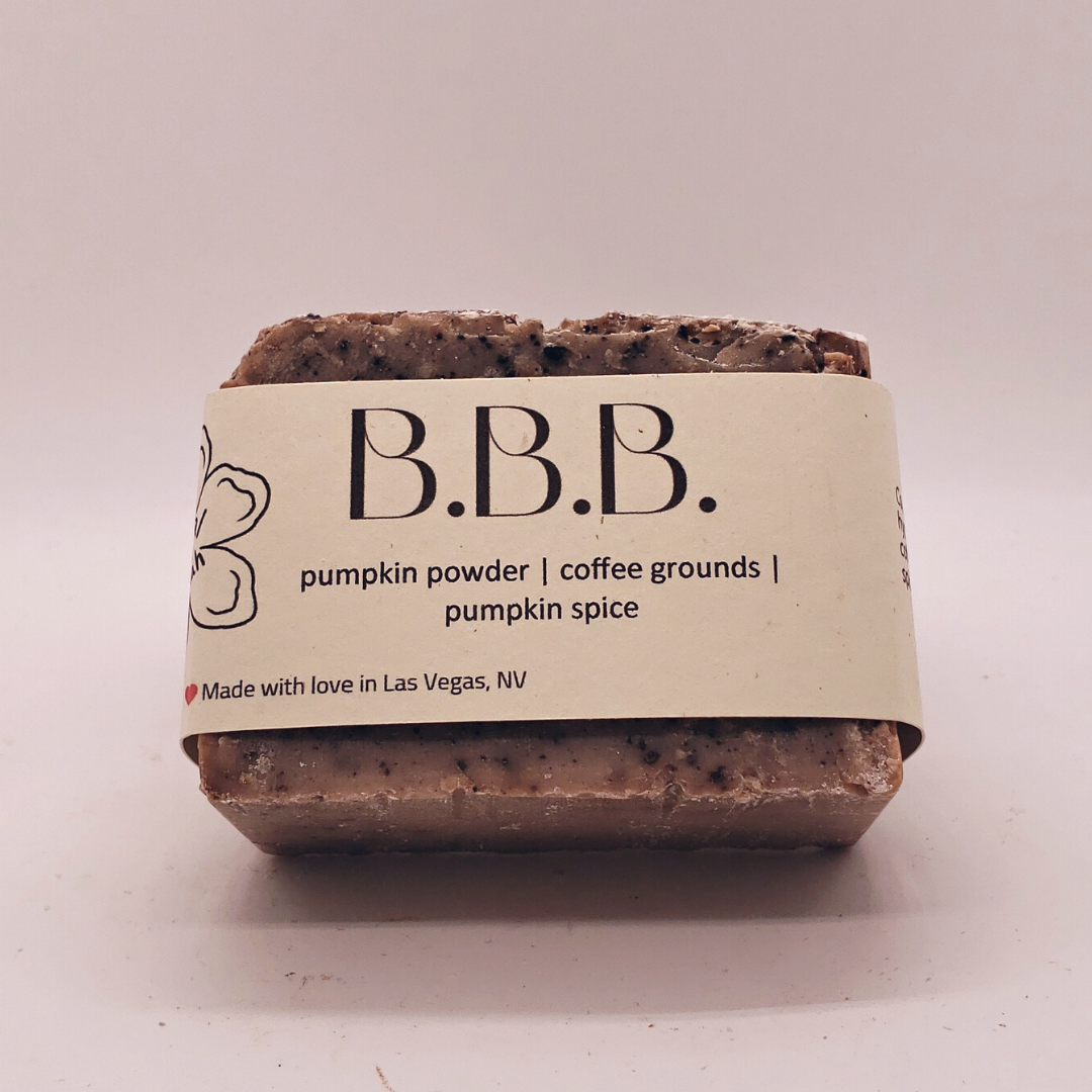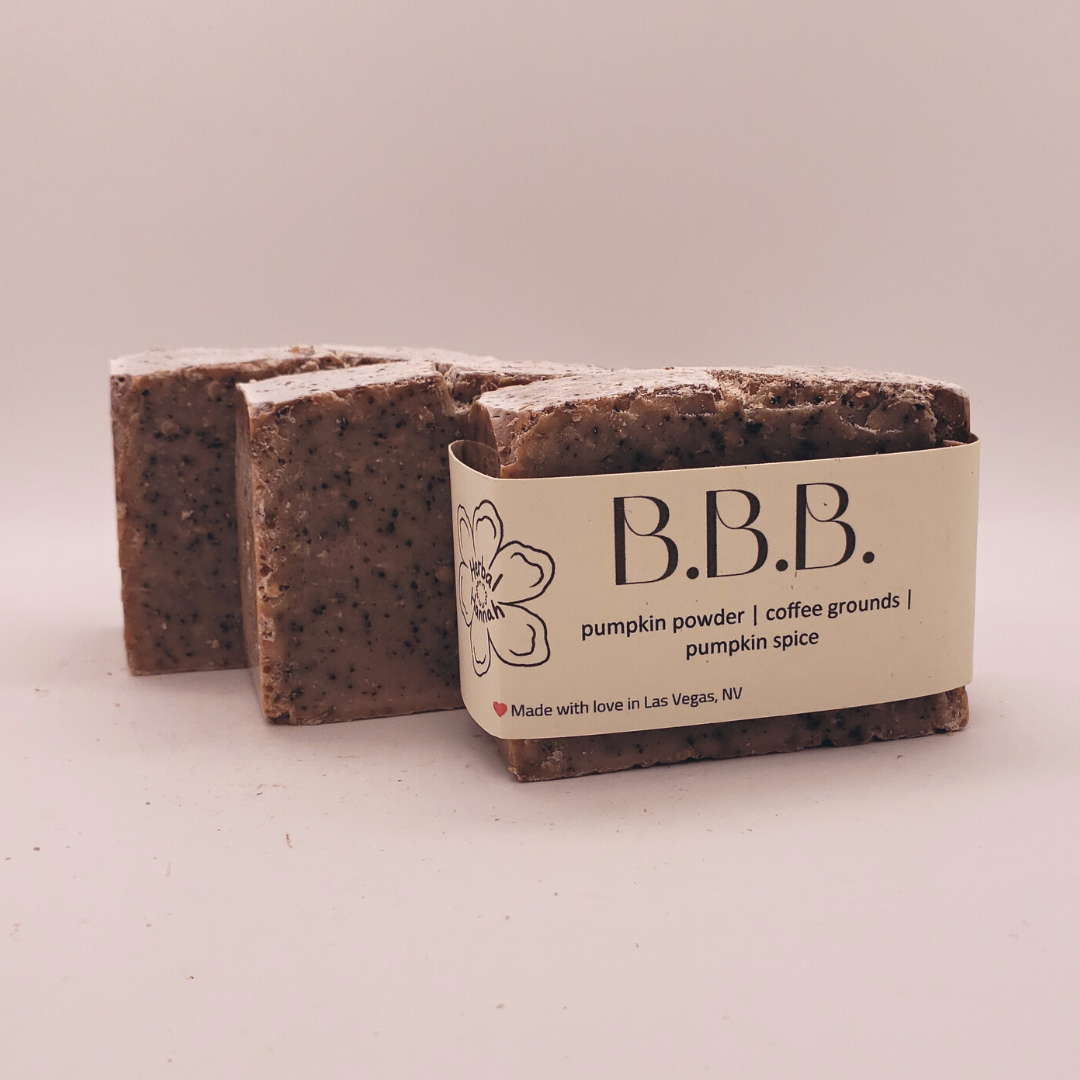 The pumpkin powder delivers some great nutrients to the skin, while also being a chemical exfoliator.  The coffee grounds make this bar smell DELICIOUS and act as a manual exfoliator.