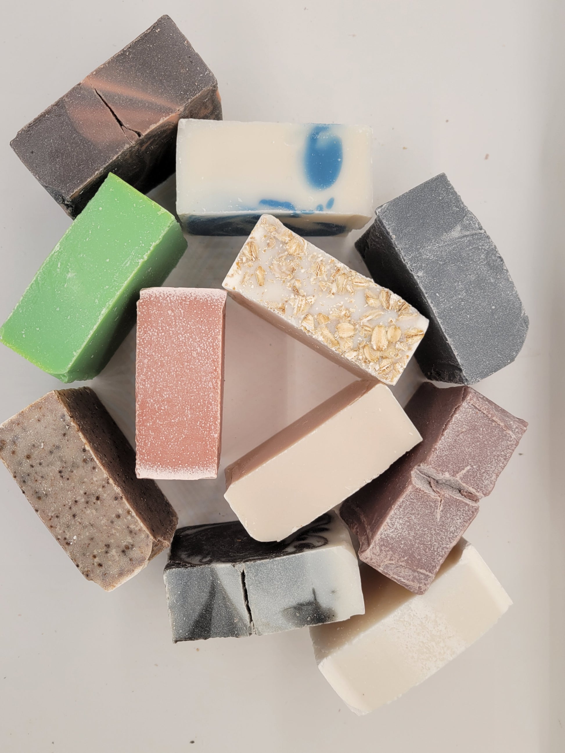 All our natural bar soaps are made with coconut oil and diatomaceous earth.